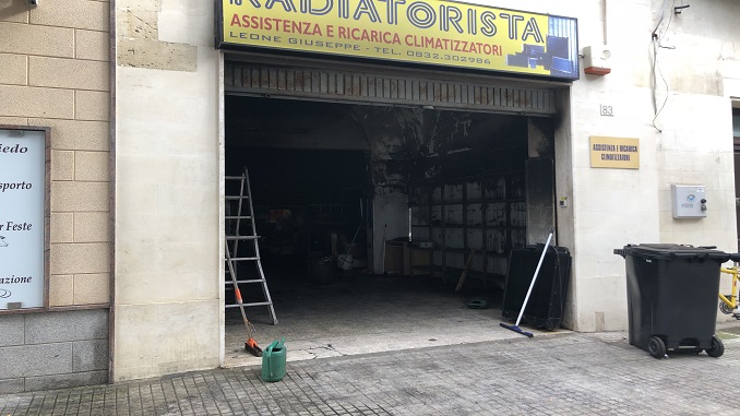 L’incendio ha divorato ogni cosa nell’officina: l’auto parcheggiata all’interno, i macchinari e gli attrezzi del mestiere, gli scaffali e le pareti.