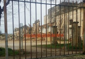 Il 21 febbraio scorso, il primo cedimento, dovuto alle cattive condizioni di manutenzione e alla pioggia. Probabilmente, il nubifragio di questi giorni ha fatto il resto: è venuto giù quasi interamente il lato che dà sul giardino, nonostante fosse stato puntellato con ponteggi in legno apposti la scorsa settimana.