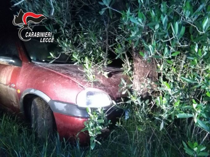 CASTRIGNANO DEI GRECI- Tentano di speronare l’auto dei carabinieri ma finiscono contro un albero. Non sono servite, dunque, le numerose manovre di depistaggio a Franco Perrone e Alessandro Caldiron, arrestati la scorsa notte dai militari della compagnia di Scorrano.