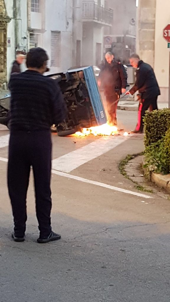 CALIMERA- Paura nel pomeriggio a Calimera. Un 50enne del posto, ben noto alle forze dell’ordine, si è reso responsabile nel pomeriggio dell’ennesimo incendio doloso proprio nel centro del paese. E’ arrivato con la sua ape car nei pressi del monumento dei Caduti e davanti ad un pub molto frequentato e ha dato fuoco al mezzo. Tanti i testimoni che hanno assistito alla scena. Il fuoco in pochi minuti ha avvolto il veicolo e solo l’intervento dei carabinieri che si sono prodigati per spegnere le fiamme e poi dei vigili del fuoco ha evitato che il rogo si estendesse. La sua posizione è ora al vaglio degli inquirenti.