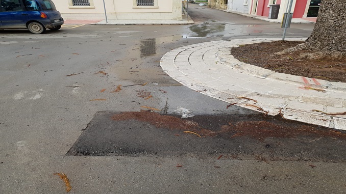 Dev’esserci una falla nel troncone dell’acquedotto rurale, e l’acqua sgorga da 20 giorni. Per questo i residenti hanno chiesto l’intervento del Comuen, scrivendo una lettera indfirizzata al sindaco e agli assessori ai Lavori pubblici, alle Marine, e alla Polizia municipale. Hanno anche fatto intervenire l’Acquedotto pugliese, ma la condotta è dell’Ente Riforma e quindi i tecnici non hanno potuto mettervi mano.