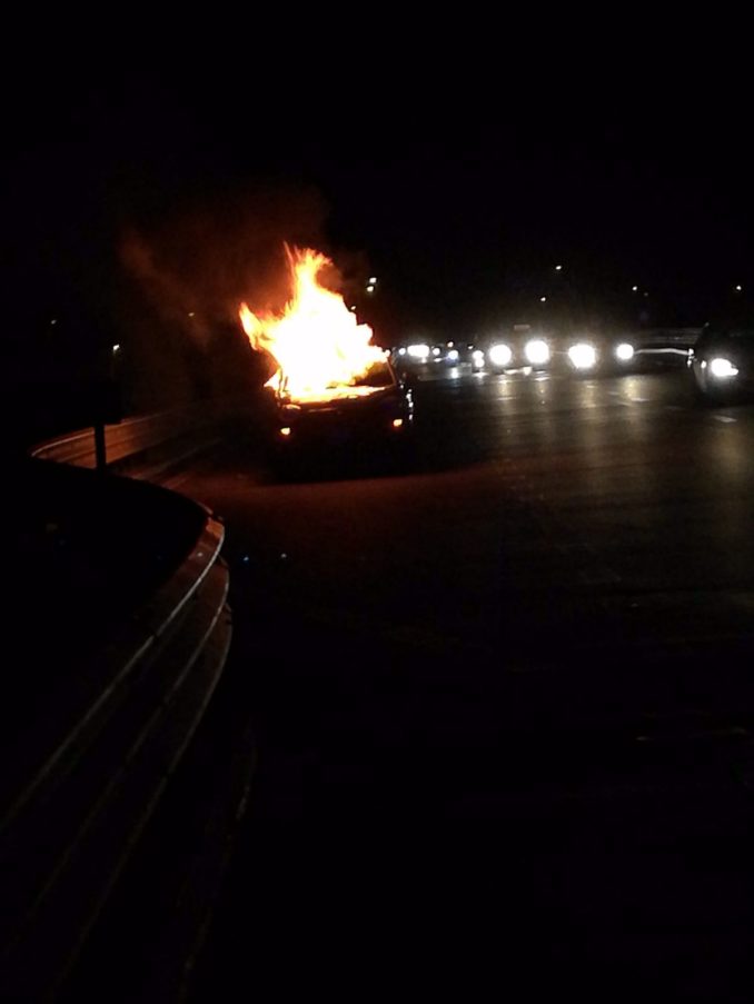 Paura sulla tangenziale Ovest, auto in fiamme, ma il proprietario si salva
