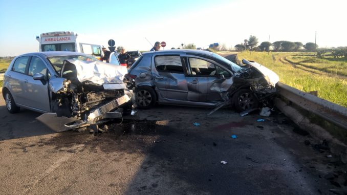 STERNATIA – Grave incidente stradale nel pomeriggio sulla provinciale Sternatia  –  Soleto. Impatto tra due vetture, una Fiat Punto ed una Pegeout. Tre i feriti. Due in codice giallo ed uno in codice rosso. Due sono stati trasportati al vito Fazzi di Lecce, un altro a Scorrano