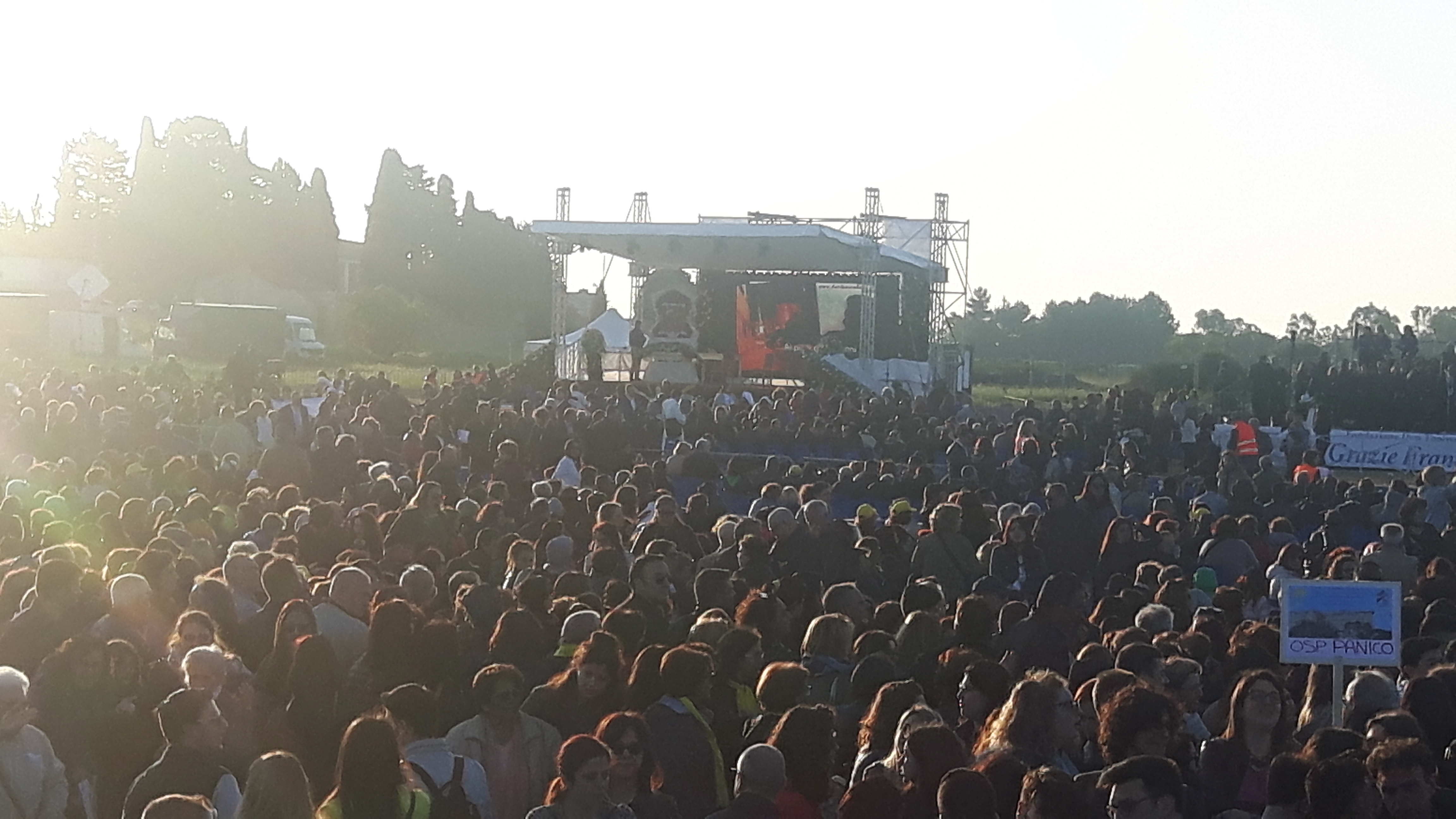 Nel grande spiazzo davanti al cimitero, ci sono anziani, giovani, bambini, gli scout giunti da tutta Italia, la gente di don Tonino. Alle 7 il primo momento di preghiera collettivo.
