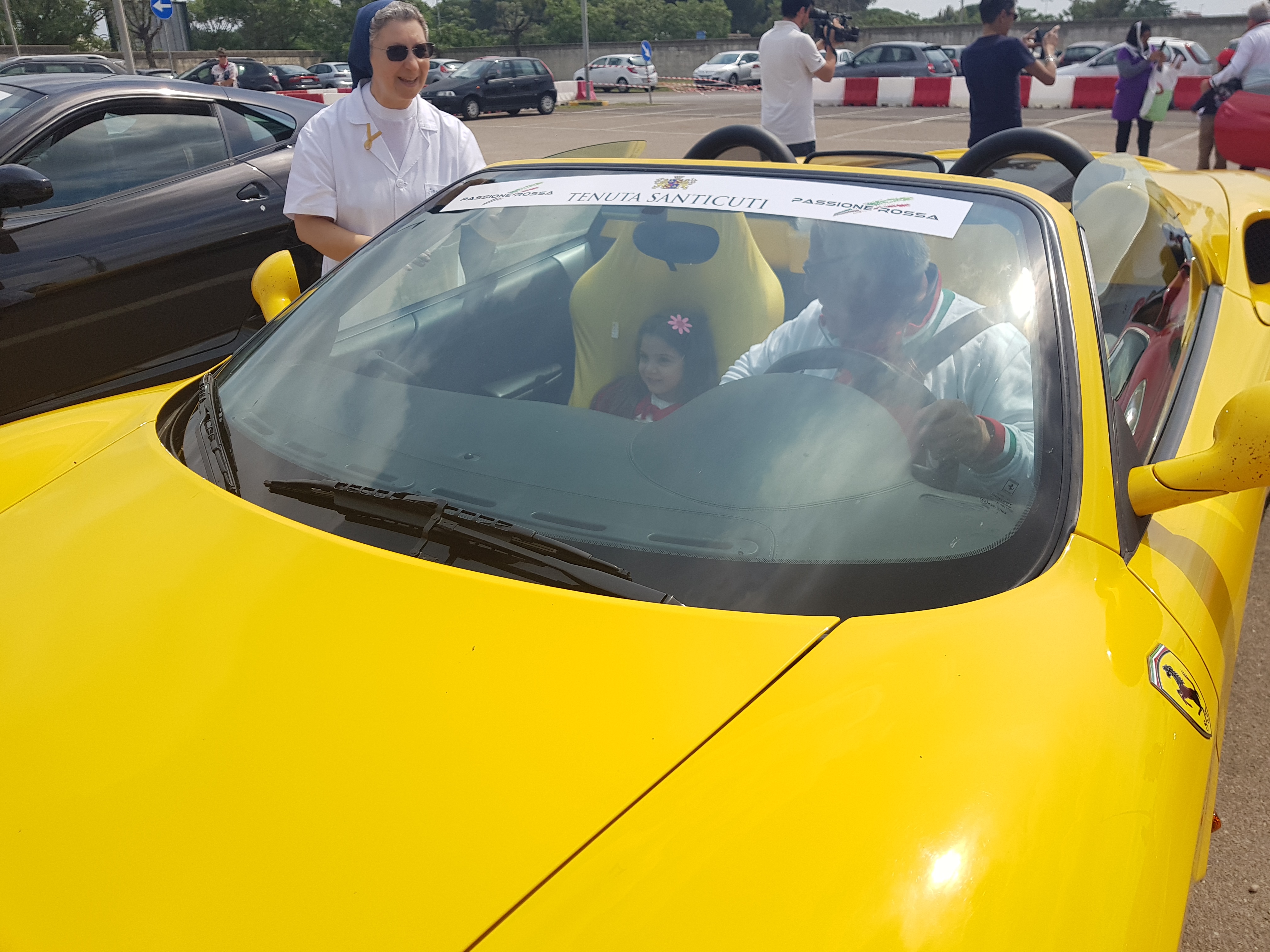 LECCE- Fiammanti Ferrari nel parcheggio del Polo Oncologico del Fazzi di Lecce per regalare un sorriso in più a tutti i piccoli pazienti. E’ stata una festa inaspettata, fatta di gioia e giri sulle rosse per chi ha desiderato provare l’ebbrezza della velocità o semplicemente toccare da vicino queste auto da sogno.