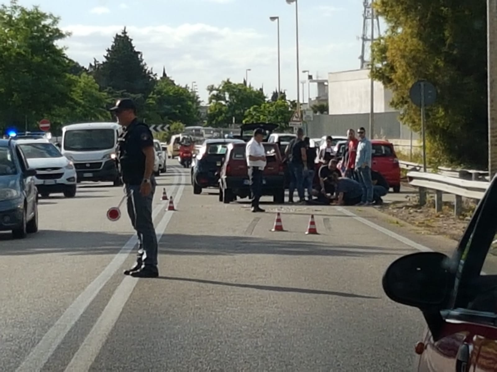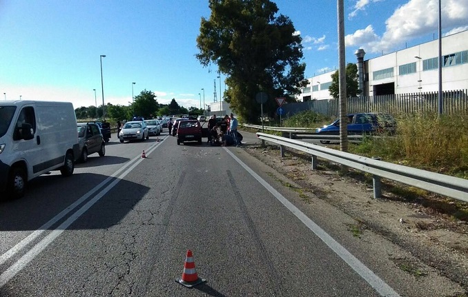 LECCE- Una ragazza a terra, ferita alla testa. Brutto incidente intorno alle 17.30 lungo la strada che collega Lecce a Trepuzzi, poco dopo il cavalcavia della zona industriale. Il tamponamento ha riguardato due auto, una Panda vecchio modello e una Fiat Punto.