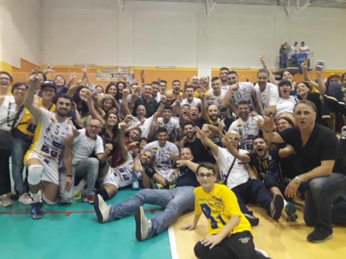 LEVERANO – Grande festa a Leverano. Dopo sei anni  in un campionato nazionale,  per la Bcc Leverano arriva la Serie A 2. La squadra guidata dal coach Andrea Zecca è riuscita a sconfiggere  fuori casa il Conad Lamezia per 3-1, in gara 3, conquistando la promozione nella serie A/2 di pallavolo.