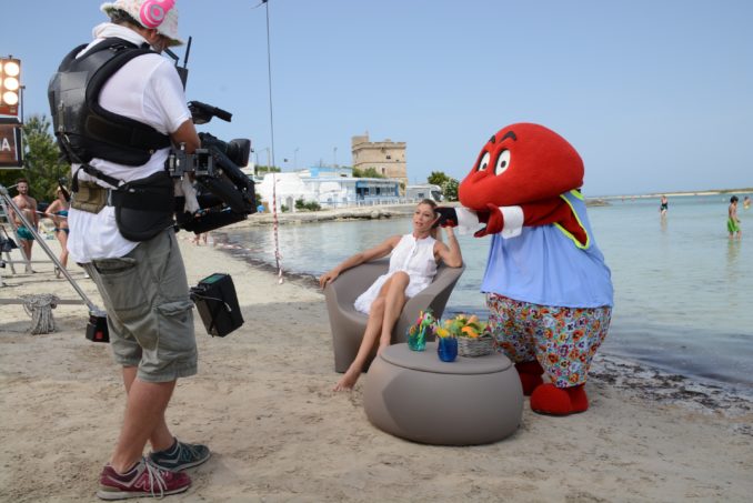 SANT’ISIDORO- Sono iniziate nelle scorse settimane le riprese nel Salento della sigla e delle puntate di Paperissima Sprint, il noto programma tv condotto da Maddalena Corvaglia e il Gabibbo, in onda su Canale 5 da lunedì scorso. Si tratta del secondo anno consecutivo per  l’ex velina, salentina d’origine, che ancora una volta ha scelto  Nardò e il villaggio di Sant’Isidoro per divertirsi con i bagnanti e lanciare i  filmati provenienti da ogni parte del mondo, con gaffe, errori, scivoloni, con protagonisti bambini, cuccioli, animali, sposi, atleti.  “Siamo felici – dice l’assessore al Turismo Giulia Puglia – per questa vetrina eccezionale, che ci siamo meritati tutti insieme. Sfruttiamo di nuovo dunque questa opportunità per Sant’Isidoro, che stavolta si prende legittimamente la copertina di una striscia televisiva tra le più viste”.