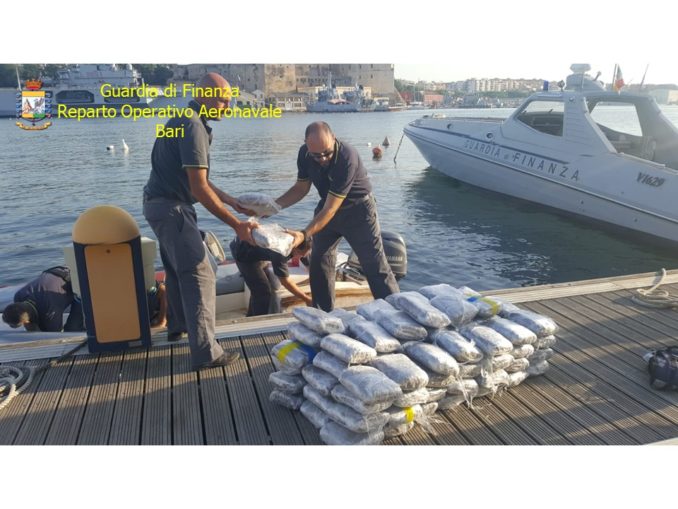 Il gommone utilizzato per il traffico illecito è stato sequestrato e condotto agli ormeggi della Sezione Operativa Navale Guardia di Finanza di Brindisi. Il conducente del mezzo, un 26enne, originario di San Vito dei Normanni che ha tentato di confondersi con i diportistiè stato arrestato per detenzione e traffico internazionale di stupefacenti .