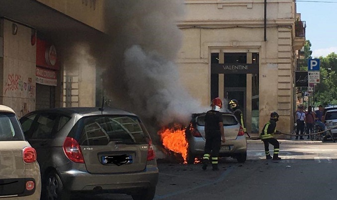 LECCE- Fuoco e fiamme nel cuore della città, alle spalle della Coin, nei pressi di via C. Battisti,  dove poco dopo le 13,00 un incendio ha interessato un’auto parcheggiata. Immediato l’intervento sul posto dei vigili del fuoco che hanno domato le fiamme. In corso accertamenti per risalire alla natura del rogo.
