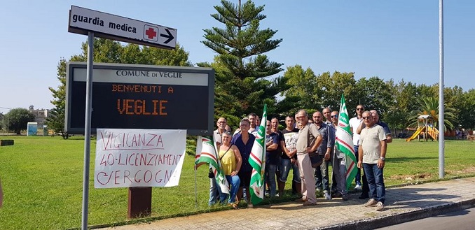 In mattinata, la protesta a Veglie. Licenziamenti, dunque, “nonostante come sindacati, insieme a Filcams Cgil, Uiltucs Uil e UGL vigilanza si è cercato di trovare soluzioni alternative per non far perdere la dignità a 40 famiglie. Sono mesi che con la società siamo in trattativa per una buona e migliore organizzazione del lavoro – dice Carmela Tarantini, Fisascat Cisl – dal momento che ci siamo trovati a dover far fronte a turni massacranti e senza la possibilità per i lavoratori di usufruire di ferie e permessi. E adesso, con 40 unità in meno, come si farà a garantire i servizi e la sicurezza alla cittadinanza che si affida alla vigilanza per difendere i propri beni?”.