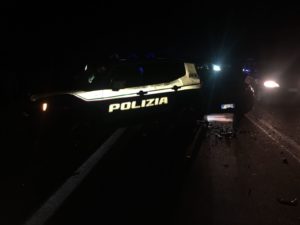 In attesa dell’arrivo carro attrezzi, la pattuglia ha provveduto a segnalare la situazione di pericolo agli automobilisti che sopraggiungevano, spostandosi indietro, con il veicolo di servizio, utilizzando i segnali luminosi di emergenza di colore blu, di circa un centinaio di metri, accostandosi a ridosso del margine destro della carreggiata. Qualche minuto dopo, a causa della velocità sostenuta, la pattuglia è stata violentemente investita da un’autovettura di grossa cilindrata, condotta da un 45enne originario della provincia di Napoli e residente a Bergamo, fino a spostarla di 10 metri. I tre agenti, nonostante il contraccolpo subito, hanno prestato soccorso al conducente della Mercedes e gestito la viabilità, nel frattempo divenuta disordinata. Di lì a poco sono sopraggiunti, un’altra pattuglia del Reparto Prevenzione di Bari in ausilio, la Polizia Locale e i Carabinieri di Gallipoli, per i rilievi dell’incidente. I tre poliziotti, accompagnati presso il pronto soccorso dell’ospedale di Gallipoli, se la sono cavata con 10 giorni di prognosi ognuno.