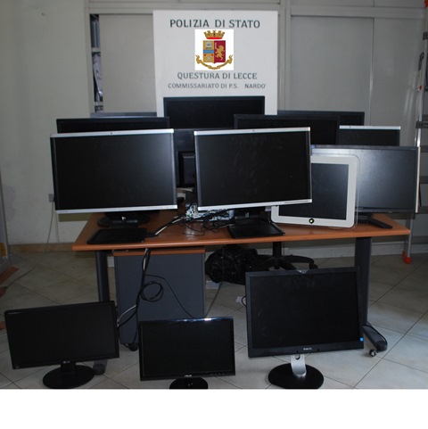 Non c’erano solo i monitor dei pc, poi restituiti in municipio, ma anche un fonte battesimale in rame, vari calici in oro ed argento, pissidi, incensiere ed altri oggetti sacri. Era stato tutto trafugato in due occasioni diverse dalla Chiesa della Santa Famiglia di Nardò. Anche in questo caso gli oggetti rinvenuti sono stati restituiti al parroco don Giuseppe Orlando, mentre il trentasettenne R.R. è stato denunciato per ricettazione.