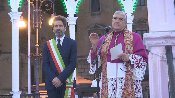 LECCE – Nel secondo giorno di festa, il sindaco di Lecce Carlo Salvemini ha consegnato l’olio per la lampada votiva all’arcivescovo mons. Michele Seccia. Un segno di unità d’intenti per tenere sempre accesa la fiamma di un cammino da fare insieme, per migliorare Lecce, renderla più bella nel nome della solidarietà e dell’accoglienza.