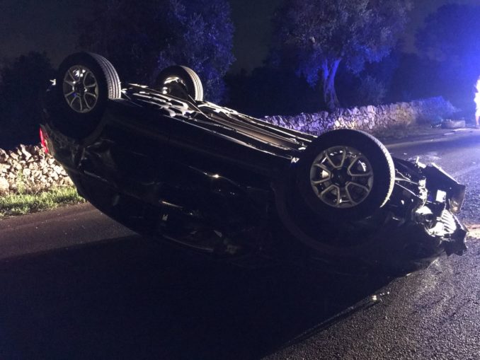 Attimi di paura anche sulla strada che collega Salice Salentino a San Donaci, dove verso l’1.30 una vettura ha perso improvvisamente il controllo puntando dritta sul rondò, dove ha abbattuto le insegne girandosi su se stessa diverse volte.