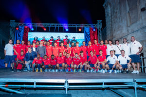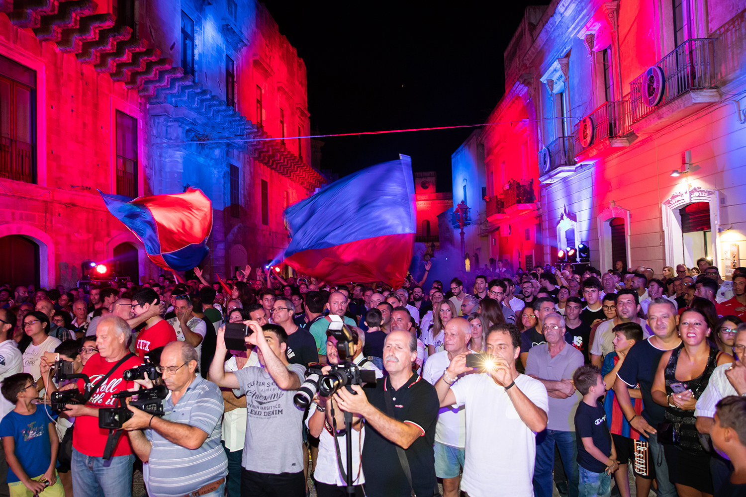 CASARANO – Una piazza straripante di colore e calore, Piazza Garibaldi vestita a festa con i colori più belli per la città di Casarano, il rosso e l’azzurro insieme uniti a formare un’antica passione, quell per lo sport e non solo il calcio, perché in città si vive anche di volley. E allora su il sipario e giù il drappo e sono state svelate le rose del rose del Casarano Volley e del Casarano Calcio e le nuove divise delle due squadre e si è dato il via alla campagna abbonamenti.