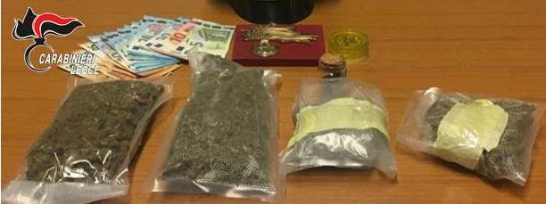 SPONGANO- In auto con la droga. A finire nei guai Leonardo Sammati, un 23enne di Miggiano, bloccato dai carabinieri sulla Poggiardo-Spongano a bordo di un’Alfa 147 con i vetri oscurati. Durante la perquisizione veicolare, i militari hanno rinvenuto sotto i sedili posteriori 4 involucri con 291 grammi di Marijuana, oltre alla somma contante di 460 Euro. A quel punto i controlli sono stati estesi anche presso l’abitazione del 23enne, dove sono stati trovati nel comodino altri 10 grammi di Marijuana. Il tutto è stato così sottoposto a sequestro, mentre il giovane è stato posto agli arresti domiciliari.