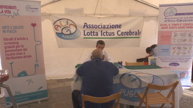 D10 alle 18, in Piazza Sant’Oronzo, uno stand è stato messo a disposizione dalla Protezione Civile per il pubblico che può usufruire gratuitamente di uno screening qualificato di pressione arteriosa e fibrillazione atriale, realizzato con il supporto di neurologi, cardiologi e personale infermieristico, oltre che dei volontari di A.L.I.Ce. Puglia Onlus.