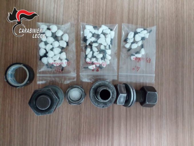 MARTANO – E’ finito in manette con l’accusa di detenzione ai fini di spaccio di sostanze stupefacenti, Stefano Danisio, 45enne di Martano. L’uomo a seguito di una perquisizione personale è stato trovato in possesso di 66 involucri contenenti complessivamente 22,8 grammi di cocaina, occultati all’interno di alcuni bulloni a vite appositamente “fresati” all’interno e poi chiusi, proprio per poter nascondere la sostanza.