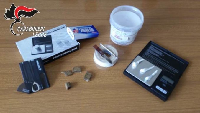 Nell’ambito dello stesso servizio antidroga è stato arrestato Cristian Stella di Merine trovato con oltre 5 chili di marijuana e un bilancino elettronico di precisione.