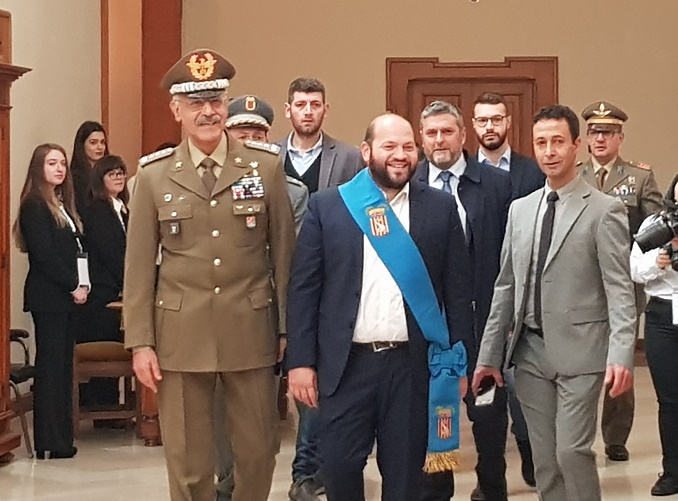 LECCE- Cerimonia nella sala consiliare di Palazzo dei Celestini, per rendere onore alla brillante carriera del Generale di Corpo d’Armata Luigi Francesco De Leverano, donandogli anche una targa di riconoscimento.