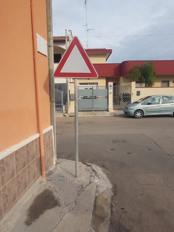 LEQUILE – Chissà cosa avranno pensato gli automobilisti che arrivati a Dragoni, nella Frazione di Lequile, esattamente all’incrocio tra Via Osanna e Via IV Novembre si sono trovati di fronte questo segnale. E noi speriamo che abbiano effettivamente dato la precedenza. Si tratta del triangolo che invita ad usare prudenza, ma installato, ecidentemente,  al contrario. La segnalazione è giunta proprio dagli automobilisti, che in queste ore, ovviamente ci stanno scherzando su.