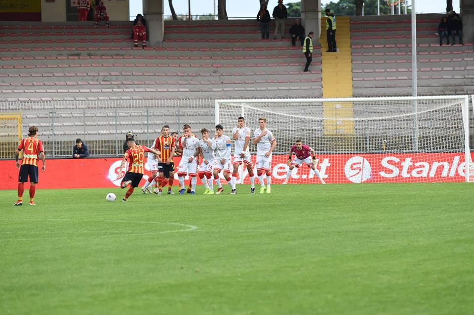 Le due squadre danno vita ad una gara giocata su ritmi bassi ed è un batti e ribatti di tentativi andati a vuoto: l’azione più ghiotta per gli ospiti arriva al 24°: Verre approfitta di un controllo sbagliato di Meccariello e serve Melchiorri che da buona posizione spreca. Al 29° buona giocata di Falco che cerca Mancosu in area ma il sardo non riesce a concludere; al 37° è sempre Falco a rendersi pericoloso ma il suo tiro si spegne sulla difesa.