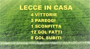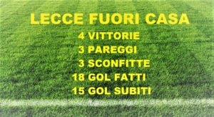 Dei 30 punti il Lecce ne ha conquistati 15 in casa e 15 fuori, tra le mura amiche però ha giocato 8 volte facendo bottino pieno per 4 volte, perdendo una volta e pareggiando 3, con 12 gol segnati e 8 subiti, e nella parziale classifica risulterebbe al 12° posto; mentre fuori casa ha giocato 2 gare in più e cioè 10, con 4 vittorie, 3 pareggi e 3 sconfitte con 18 gol e 15 subiti ed è secondo dietro al Brescia e precede proprio il Benevento e anche il Verona con 3 punti in più.