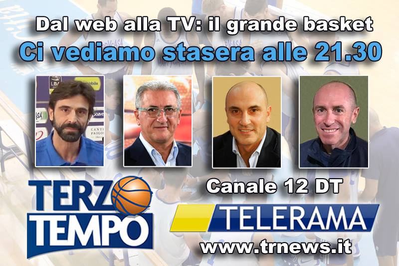 LECCE – Appuntamento questa sera alle ore 21:30 su TeleRama con Terzo Tempo la trasmissione che tratta il grande basket, curata e condotta da Antonio Celeste con la collaborazione di Francesco Guadalupi, sarà possibile seguirla anche in streaming su www.trnews.it e sulla pagina di Telerama Facebook.
