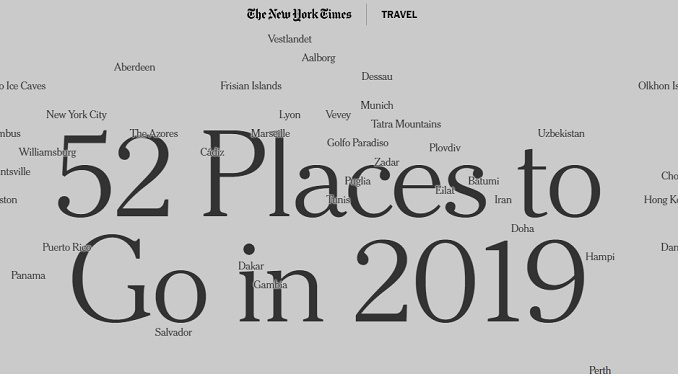 SALENTO- 52 mete, una per ogni settimana dell’anno. Sono i luoghi che il New York Times consiglia di visitare con la selezione “52 Places to Go” e, per il 2019, nella lista c’è anche la Puglia, in diciottesima posizione, con la segnalazione particolare di alcuni posti nel Salento. E c’è anche un’altra regione italiana: la Liguria, alla venticinquesima settimana.