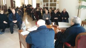 MERINE- Ha posto l’accento sulla funzione pedagogica del giornalismo, ha detto che la verità va raccontata senza indirizzarla e senza forzare i toni, e ha sposato la causa della Gazzetta del Mezzogiorno che deve essere salvata. L’arcivescovo di Lecce celebra così la ricorrenza di San Francesco di Sales, patrono degli operatori della comunica­zione sociale, incontrandoli nella chiesa parroc­chiale di Merine dedicata ad un grande maestro di comunicazione, San Giovanni Paolo II.  Mons. Seccia ha scritto un pensiero, lo ha firmato e consegnato al direttore Gianfranco Lattante, per dimostrare la sua solidarietà a Gazzetta, per chiedere l’impegno di chi “può e deve provvedere a questa voce della comunità”.  Il decano dei giornalisti salentini Elio Donno ha proposto una riflessione sul tema toccato da papa Francesco, “Dalla community alla comunità”.