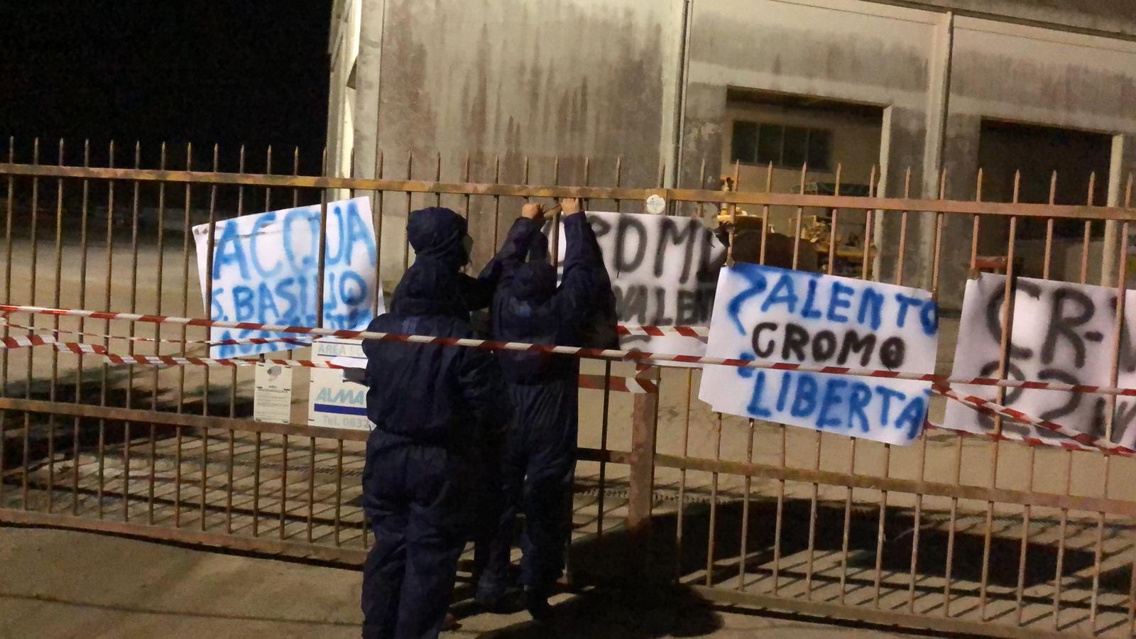 Gli attivisti, con indosso delle tute ‘anticontaminazione’ di colore blu e delle mascherine sulla bocca, hanno affisso sui cancelli una serie di manifesti accusatori, lasciando anche copia dei risultati degli esami di laboratorio di Arpa Puglia. “Questo stabilizzato di cava che ha ricoperto tutto il cantiere TAP – rimarcano gli attivisti – è risultato contaminato da Cromo esavalente. Nonostante questa grave contaminazione, la ditta Donato Coricciati non compare in nessun provvedimento della Procura di Lecce”. Il movimento parla di “grave questione di cui in pochi sono a conoscenza”.