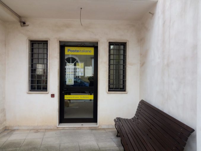 CAPRARICA – Momenti di terrore questa mattina all’interno dell’Ufficio postale di Caprarica Di Lecce. Sembrava una giornata come le altre, ma una volta varcata la soglia degli uffici di via Martano, il direttore della filiale e gli impiegati si sono trovati di fronte la banda di rapinatori che seminando il panico sono riusci a portare via il denaro contenuto in cassa. I malviventi sono riusciti ad introdursi all’interno grazie ad un foro praticato nella parete di un’abitazione confinante, al momento disabitata. Poi hanno atteso l’arrivo degli impiegati. L’azione criminosa è stata velocissima, la banda, infatti, in pochi minuti è poi fuggita con il bottino, ancora in via di quantificazione.