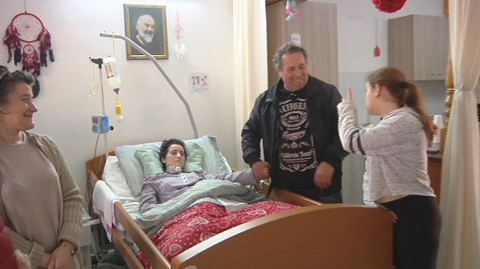 Era il tardo pomeriggio del 26 ottobre 2017 quando qualcosa si è spezzato per sempre. Una delle figlie di Maurizio e Palmira, Ersilia, 19 anni, estetista, stava guidando la sua Fiat Punto, percorrendo la 274, che conduce da Gallipoli a Leuca, era nei pressi di del suo paese, Salve, quando si è schiantata contro un’altra auto. Un impatto frontale, che ha coinvolto tre vetture. Una donna è rimasta illesa, due ragazze hanno riportato ferite lievi. Ersilia, invece, era gravissima. L’ambulanza la portò a sirene spiegate nell’ospedale Vito Fazzi di Lecce, dove rimase in Rianimazione per tanto tempo, in coma. Poi una parte di lei si è svegliata. Da allora è rimasta sempre in ospedale, la mamma è stata per più di un anno, ogni giorno, accanto a lei. Finché, finalmente, un mese fa è stato possibile riportarla a casa. Una casa che, proprio come il cuore di chi ci abita, ha dovuto adattarsi alla nuova situazione. È stata modificata strutturalmente per accogliere il letto e tutte le attrezzature che servono a Ersilia. E mamma e papà dormono sul divano, per stare sempre con lei che ha bisogno di attenzioni e cure costanti. Non parla più questa ragazza oggi ventenne, ma ha gli occhioni spalancati e -i genitori e i fratelli ne sono sicuri- sente e comprende tutto. E infatti Francesca, la piccola di casa, un peperino dai capelli rossi, riesce anche a farla ridere.