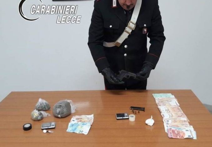 MELISSANO- Pistola e droga. A finire nei guai Vincenzo Mirko Ingrosso di 30 anni e Simone Luperto di 28, entrambi di San Cesario. Durante un controllo veicolare, il primo è stato sorpreso dai carabinieri con addosso una Beretta 7.65 completa di caricatore e quattro cartucce. In casa invece,  i militari hanno rivenuto  18 grammi di cocaina, soldi e materiale vario per il confezionamento a carico di Luperto; 1,5 grammi di cocaina, 100 di marijuana, oltre 3mila euro in contanti e materiale per il confezionamento nell’abitazione di Ingrosso. Il tutto è stato sottoposto a sequestro, mentre i due sono finiti in manette.