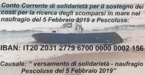 Pescatori dispersi, una nave per le ricerche. L’appello: aiutateci a sostenere i costi