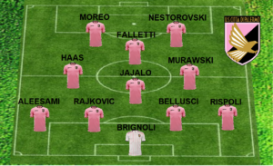 Stellone potrebbe decidere di schierare Brignoli tra i pali, difesa a quattro con Rispoli, Bellusci, Rajkovic, Aleesami, centrocampo a tre con Murawski, Jajalo, Haas, e qualche metro più avanti tra le due linee il fantasista Falletti a ridosso delle punte Nestorovski e Moreo.