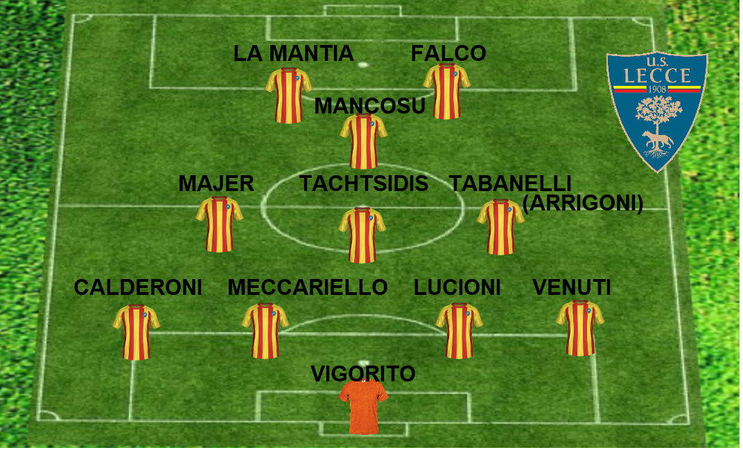 LECCE (4-3-1-2): Vigorito; Venuti, Lucioni, Meccariello, Calderoni; Tabanelli, Tachtsidis, Majer; Mancosu; Falco, La Mantia. Allenatore: Liverani.