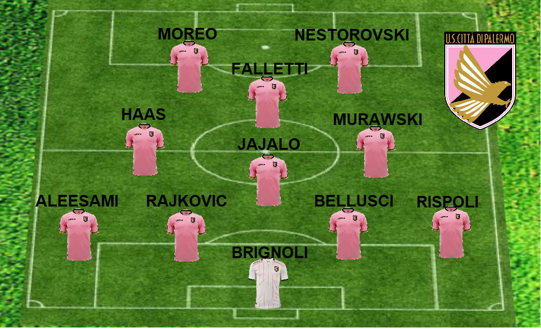 PALERMO (4-3-1-2): Brignoli; Rispoli, Bellusci, Rajkovic, Aleesami; Murawski, Jajalo, Haas; Falletti; Nestorovski, Moreo. Allenatore: Stellone