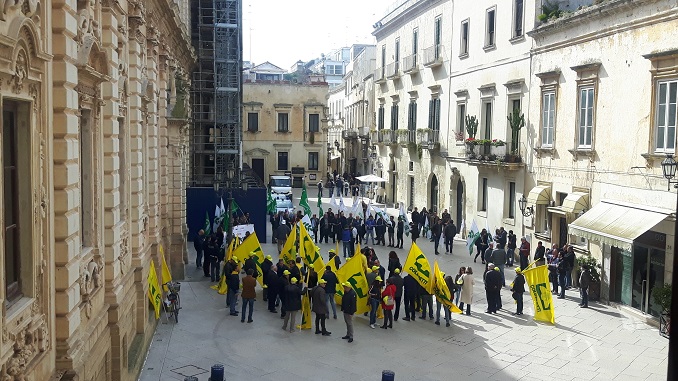 Fuori da Palazzo dei Celestini ognuno vuole far sentire la sua preoccupazione. Le organizzazioni di categoria però restano spaccate. La piazza che li accoglie rappresenta in maniera plastica questa frattura che non si riesce a risanare neppure dopo il doppio corteo di sabato. Da un lato le sigle di Agrinsieme, dall’altro Coldiretti, per cui è irrinunciabile la richiesta di dimissioni dell’assessore regionale Di Gioia.