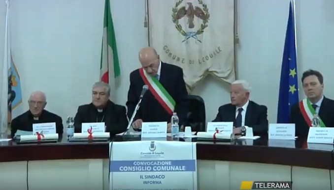 LEQUILE- In una toccante cerimonia,  il Comune di Lequile ha  voluto conferire la cittadinanza onoraria all’arcivescovo di Lecce Michele Seccia, al direttore della Caritas Attilio Mesagne e al presidente della Banca di Credito Cooperativo di Leverano Lorenzo Zecca. Tre esempi  di umanità a servizio del bene comune, che hanno fatto e continuano a fare tanto per la comunità salentina: chi in nome del dialogo e l’accoglienza chi per affidabilità e produttività.