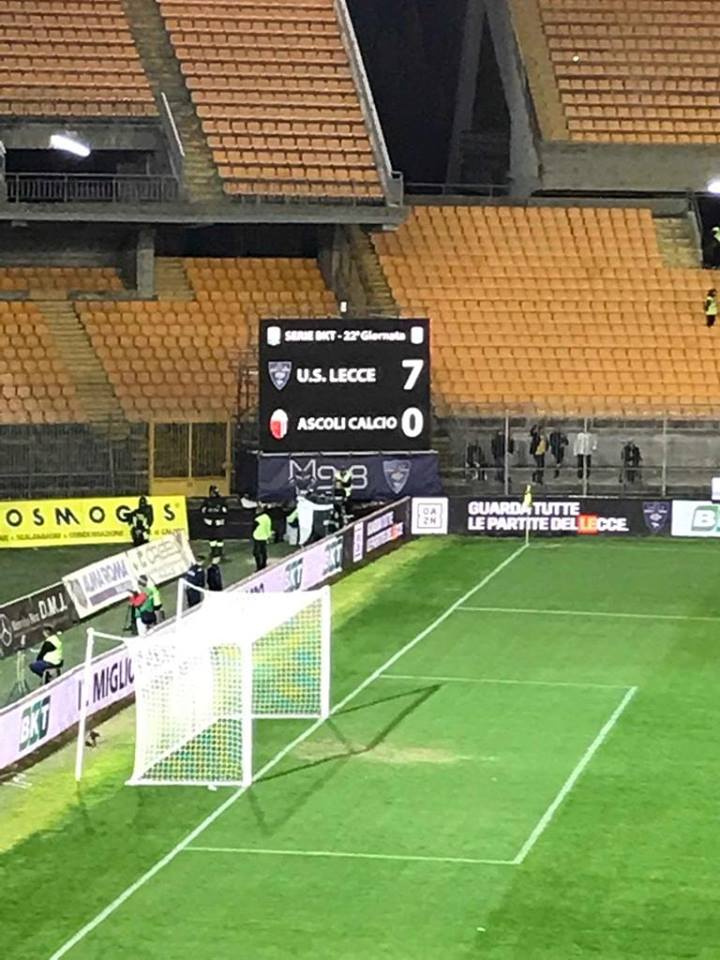 LECCE (di M.C.) – Brutta sconfitta subita a Lecce per l’Ascoli di Vivarini, 7 gol a 0 in una gara senza storia.