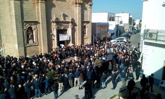 Palloncini bianchi e blu hanno seguito la salma della sfortunata mamma fino in Piazza San Michele, nella Chiesa di San Michele Arcangelo. Al termine del rito funebre celebrato dal Vescovo Vito Angiuli e dal parroco Don Fabrizio Gallo, un lunghissimo e straziante applauso sulle note di Laura Pausini, per salutare Francesca. Inconsolabile il dolore dei familiari e degli amic.