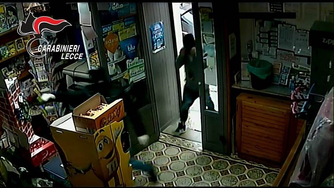 SCORRANO – Il 23 gennaio due individui, armati uno di spranga e l’altro di pistola, fecero irruzione in un bar-tabaccheria a Scorrano. Avevano i volti coperti e minacciarono con le armi la titolare perché consegnasse loro il denaro contenuto in cassa. La donna non oppose resistenza, indicò ai banditi il posto in cui trovare i soldi ma, mentre i due erano impegnati a rovistare nel cassetto, attivò un allarme acustico costringendoli alla fuga a mani vuote. Un testimone provò a seguirli, ma fu minacciato. Ora i carabinieri del NORM della Compagnia di Maglie hanno arrestato due persone, alle quali sono arrivati con i filmati registrati dalle telecamere di videosorveglianza: si tratta di un ragazzo di 19 anni, Salvatore De Gaetani, e di Marco Casciaro, 35 anni.