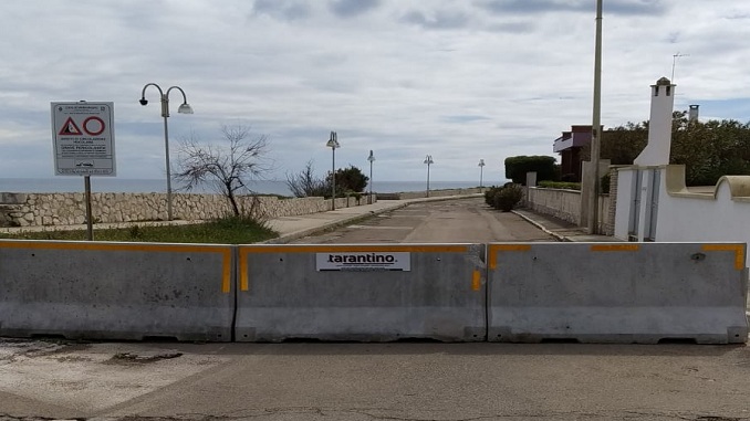 TORRE DELL’ORSO – La situazione, nel tempo, è peggiorata: scatta la chiusura temporanea di un tratto di costone a nord di Torre dell’Orso, in particolare in via Bellavista, fino all’incrocio con la strada litoranea -che non è interessata-, con l’inibizione fisica al traffico veicolare e pedonale, attraverso il posizionamento di barriere in cemento armato. In seguito a un monitoraggio dello stato della falesia, dopo gli ultimi crolli della stagione invernale, su indicazione del sindaco è stata assunta dalla Polizia Municipale, di concerto con l’ufficio tecnico, la chiusura. Incaricato, inoltre, uno studio di geologi per effettuare dei carotaggi e delle indagini, anche di tipo geofisico, con la strumentazione adatta, per valutare lo stato di consistenza di queste fratture e la presenza di eventuali cavità sotterranee che potrebbero portare a uno smottamento, a un collasso, in particolare dalla linea di costa e sotto la strada comunale in sommità. Stiamo parlando di una larghezza di 8-10 metri, compreso il marciapiede e la passeggiata panoramica. “Questo tratto -spiega il primo cittadino di Melendugno, Marco Potì– è stato interdetto per evitare il passaggio di veicoli che con le vibrazioni potessero compromettere la situazione, e anche per evitare che persone, curiosi, passanti, ma anche residenti potessero lì stazionare in una situazione di potenziale pericolo. Ho già riferito ai residenti che sono venuti a trovarmi che a valle di queste indagini verrà presentata una relazione con lo stato dei luoghi del costone e con gli interventi conseguenti da fare per mettere in sicurezza quel tratto. Ricordo che, come si vede dalla foto,
