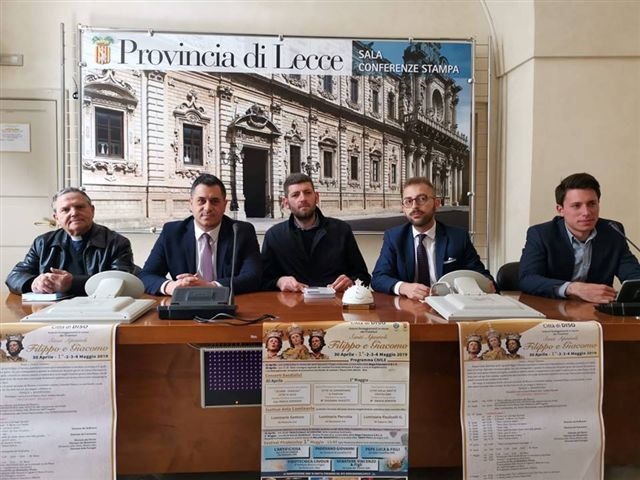 E proprio alla vigilia della festa, il 30 aprile, alle ore 17.30, in piazza Carlo Alberto, si terrà il convegno regionale dei Comitati Pro – Festa patronale di Puglia attorno al tema “La festa patronale: occasione di promozione territoriale da tutelare”. In apertura, sono previsti i saluti di don Adelino Martella, parroco della Chiesa dei Santi Filippo e Giacomo Apostoli, di Antonella Carrozzo, sindaco di Diso e di Carmine Console, presidente associazione “Feste patronali di Puglia”. Quindi, interverranno Graziano Cennamo, presidente di PugliArmonica, Gaetano Armenio, (www.patronidipuglia.it), Stefano Minerva, presidente della Provincia di Lecce, Michele Emiliano, presidente della Regione Puglia. Modererà il giornalista Gianpiero Pisanello. Alle ore 19, la cerimonia di premiazione “PugliArmonica 2019”, il premio che sarà conferito a chi, nel campo dell’imprenditoria, delle istituzioni e del mondo del volontariato, si è distinto per la tutela e la valorizzazione delle feste patronali del territorio regionale. Parteciperà all’evento il Concerto Bandistico Schipa D’Ascoli, Città di Lecce.