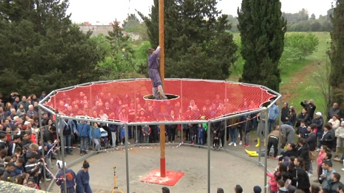 Presentati dal comico Piero Ciakky, gli sfidanti si sono arrampicati su due pali: uno riservato ai locali, l’altro ai campioni nazionali.