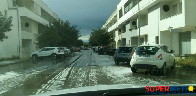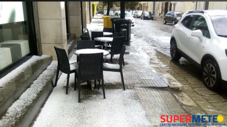 SALENTO-E’ arrivata la sferzata di aria fredda annunciata dai meteorologi per l’inizio della settimana e che ha fatto piombare il Salento in un clima autunnale. Forti raffiche di vento e temperature in calo hanno caratterizzato questa giornata insieme ad acquazzoni improvvisi. Nel Nord leccese è arrivata anche la grandine, come si può vedere nelle  immagini pubblicate dal sito Super Meteo che riguardano il comune di Novoli. Strade e campagne imbiancate e non pochi problemi per vigneti e altre colture. Fortunatamente non si sono registrati altri danni o disagi. Le temperature sono quindi in calo con massime sui 13-18°, minime sui 5-10°, mentre i mari sono mossi.