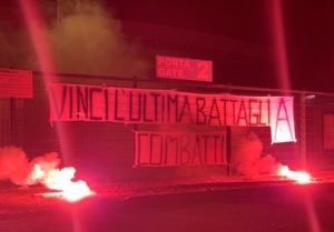 Per i tifosi è l’ultima battaglia e lo testimonia uno striscione apparso sui cancelli vicino alla porta 2 del Via del Mare.