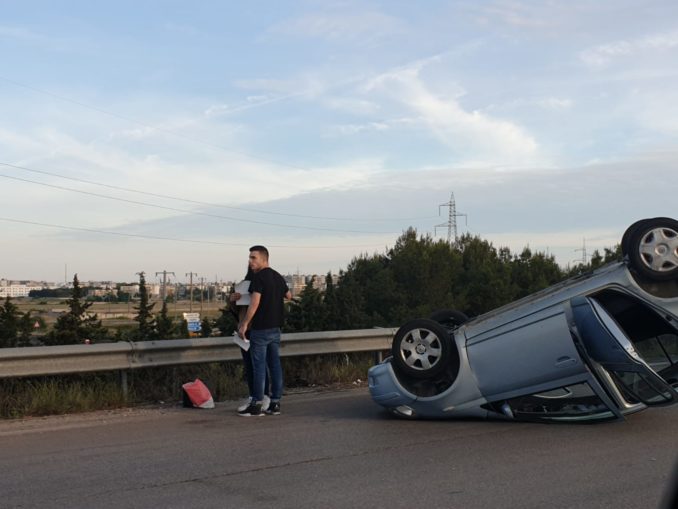 LECCE – MELENDUGNO Incidente nel pomeriggio in tangenziale ovest a Lecce, all’altezza dello svincolo per Brindisi. Una Toyota Yaris è entrata in collisione con un’altra vettura, ribaltandosi. Sul posto sanitari del 118 , vigili del Fuoco, e agenti della Polizia municipale, ma fortunatamente lo scontro, anche se spettacolare, è stato senza gravi conseguenze. Solo contusioni per i passeggeri dei due mezzi, quattro in tutto. Altro incidente, questa volta in mattinata, sulla Martano – Melendugno. Un handbikers di 42 anni è stato travolto da un’auto in corsa. L’uomo è stato rianimato ed accompagnato al Vito Fazzi . Sul posto per i rilievi del caso sono intervenuti i Carabinieri della Compagnia di Maglie.
